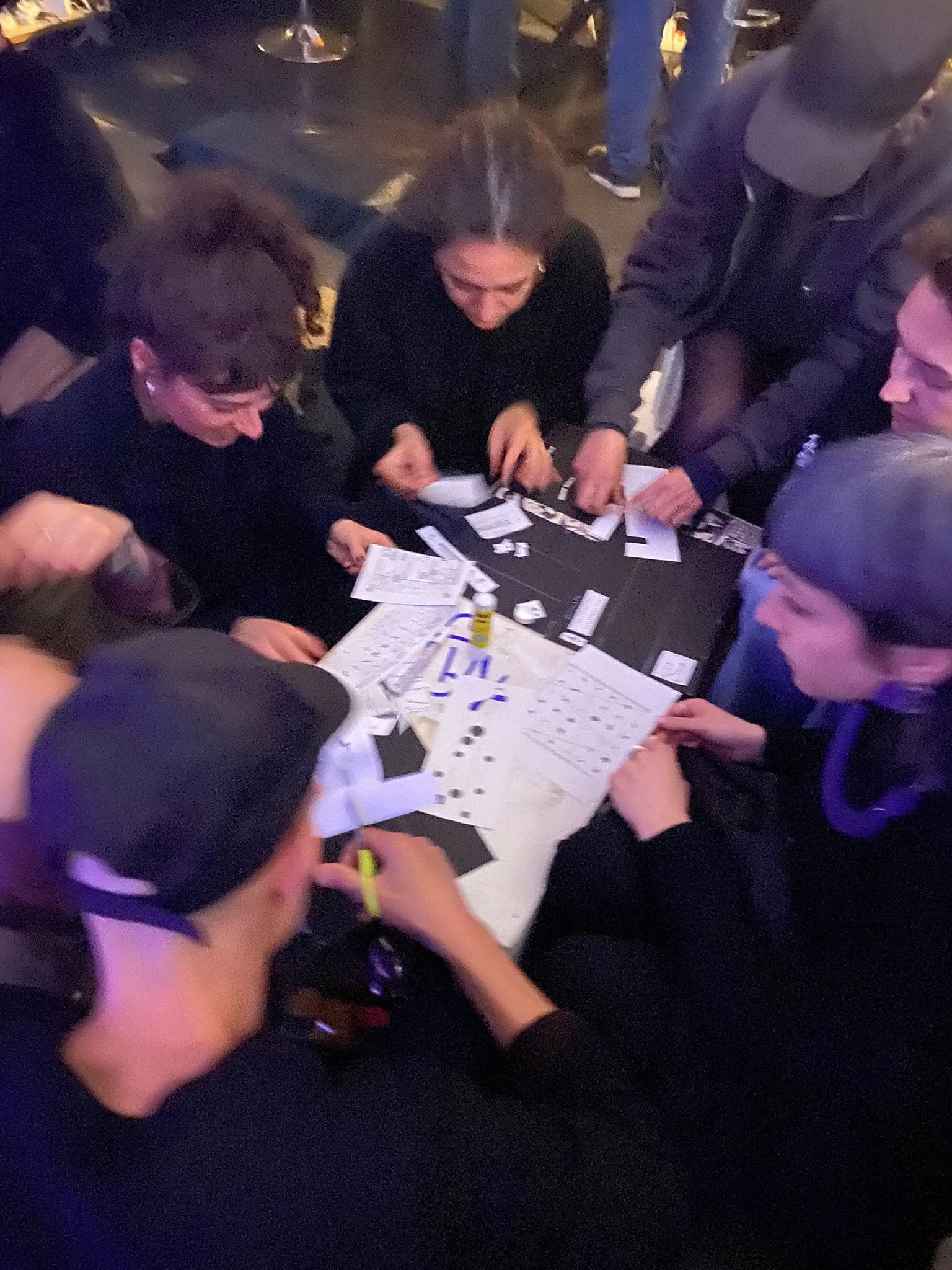 In un C3 pieno di curiosə, abbiamo preparato e realizzato insieme una partitura grafica: forbici con la punta arrotondata, colla stick e cartoncino nero alla mano, ha preso vita qualcosa di unico, di sonoro, di collettivo e di bellissimo. Quasi un art attack, quasi un laboratorio di scuola elementare: divisə in gruppi, all’oscuro di quanto stava prendendo forma, le partecipanti hanno creato collettivamente un pezzo di una lunga striscia “composta” da tante parti indipendenti ma collegate.